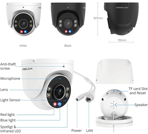 Foscam W5EP, 3K/5MP QHD PoE IP camera, with flashing red & blue lights